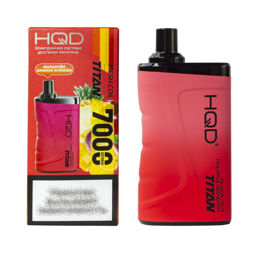 | HQD видыTitan (Титан) | HQD вкусыМаракуйя Ананас Клюква | HQD количество в блоке5 шт |